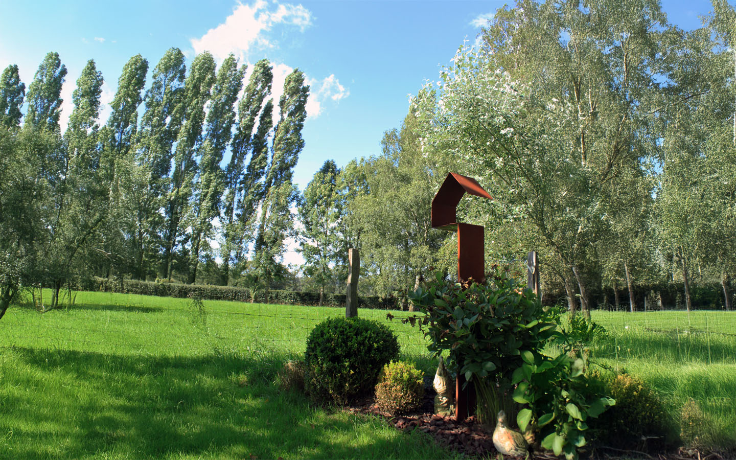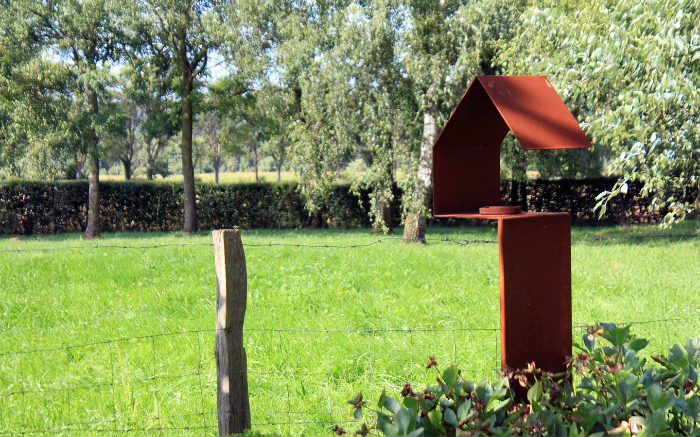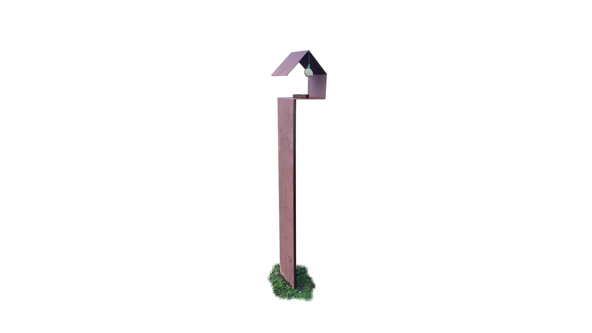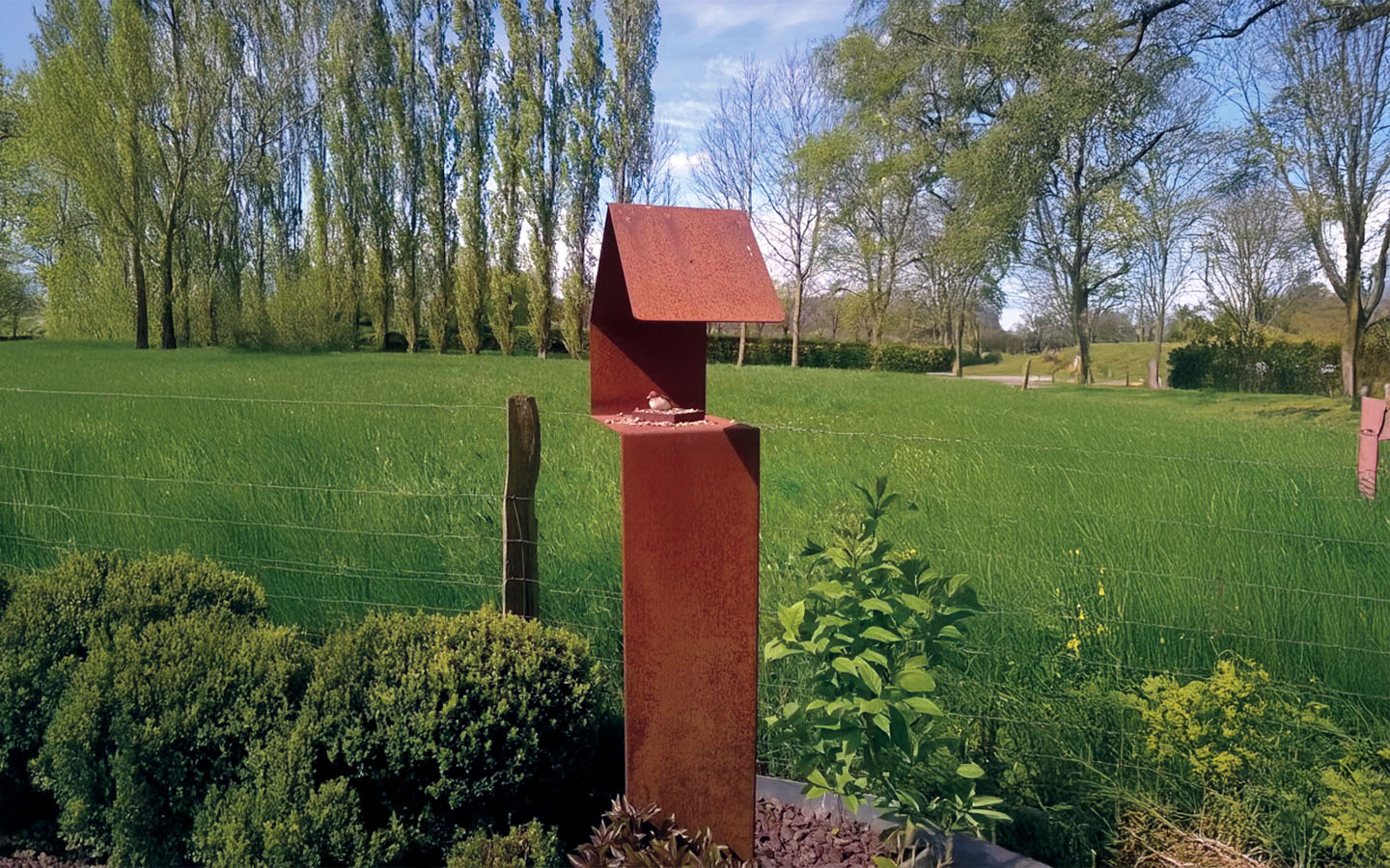 Plié hors d’une feuille d’acier corten : La matière brute, en perpétuelle transformation, au service de la nature.